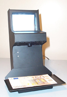Innovativo sistema per il controllo di banconote ed altri documenti. E’ la soluzione ottimale in tutti i casi ove il controllo dell’autenticità dei documenti sia essenziale. Il sistema è basato sulla risposta degli inchiostri di stampa delle banconote ad una specifica lunghezza d’onda. Il risultato della prova è immediato ed è visualizzato su uno schermo da 4”; ogni irregolarità risulta subito evidente. Il sistema non richiede alcun tipo di taratura da parte dell’utilizzatore. Un circuito di risparmio energetico e protezione schermo accende e spegne automaticamente il dispositivo. Caratteristiche tecniche
